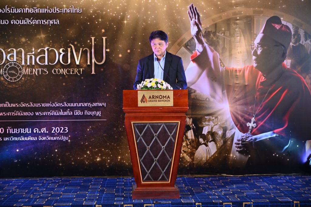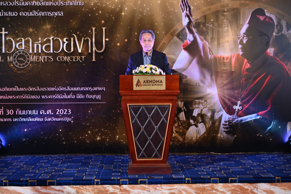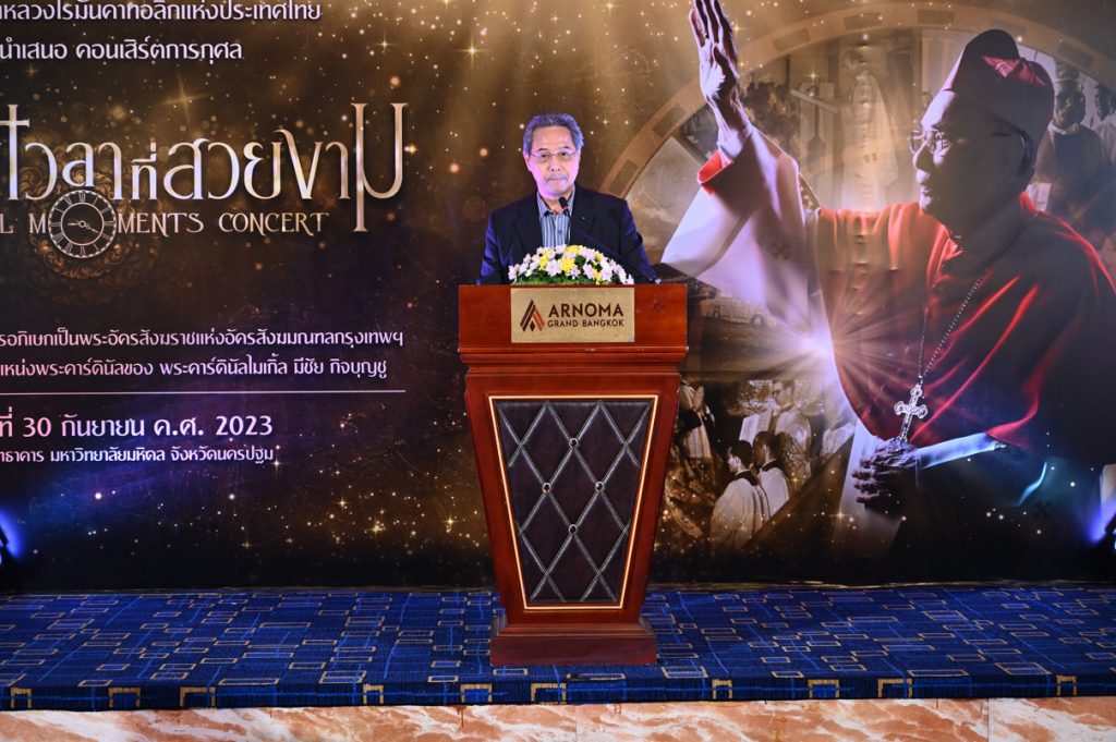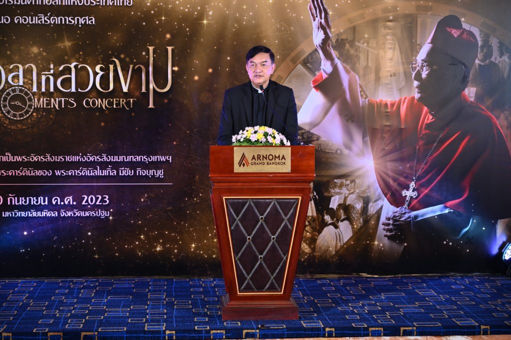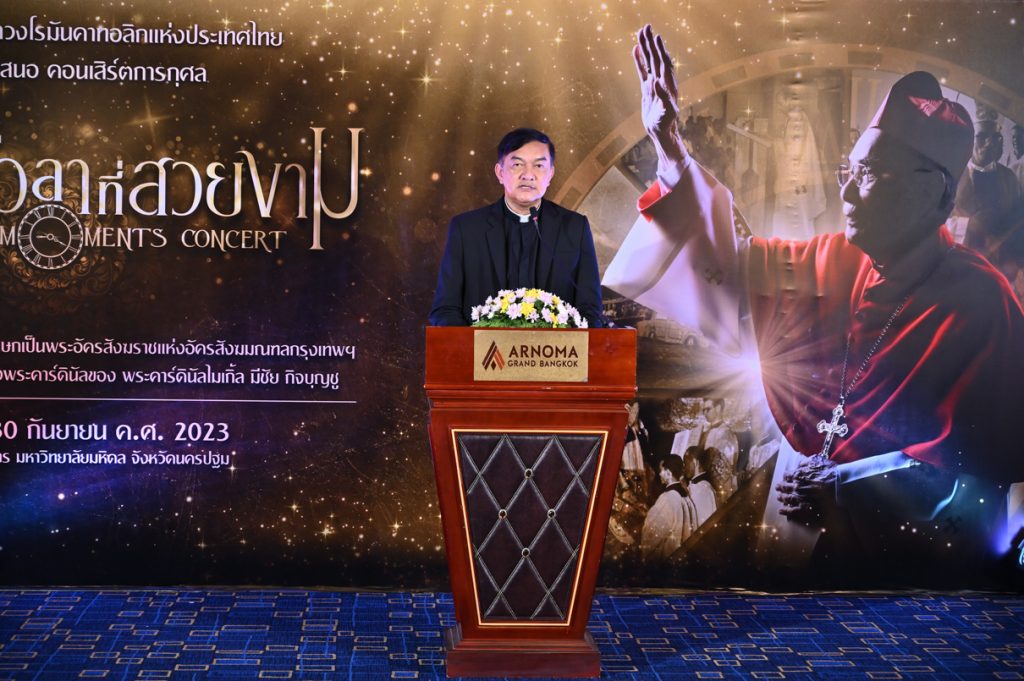 วันนี้ (19 สิงหาคม พ.ศ. 2566) สภาประมุขบาทหลวงโรมันคาทอลิกแห่งประเทศไทย ได้จัดงานแถลงข่าวเพื่อเปิดตัวคอนเสิร์ต “แด่…ทุกช่วงเวลาที่สวยงาม” โดยมีบิชอปชูศักดิ์ สิริสุทธิ์ ประธานสภาประมุขบาทหลวงโรมันคาทอลิกแห่งประเทศไทย คุณหญิงปัทมา ลีสวัสดิ์ตระกูล ประธานจัดงาน พร้อมคณะบาทหลวง และนักบวชชาย-หญิง ร่วมในงานแถลงข่าว