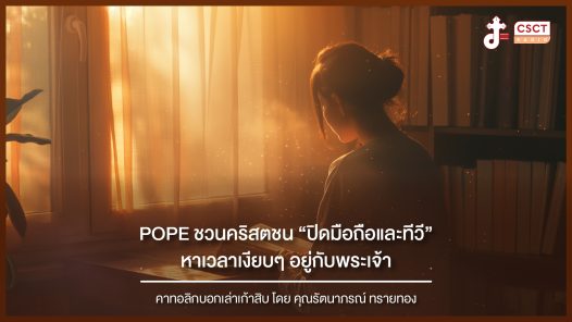 รายการ “คาทอลิกบอกเล่าเก้าสิบ”วันอาทิตย์ที่ 1 มีนาคม 2026ตอน Pope ชวนคริสตชน “ปิดมือถือและทีวี” หาเวลาเงียบๆ อยู่กับพระเจ้าดำเนินรายการโดย คุณรัตนาภรณ์ ทรายทองผลิตโดย สื่อมวลชนคาทอลิกประเทศไทย