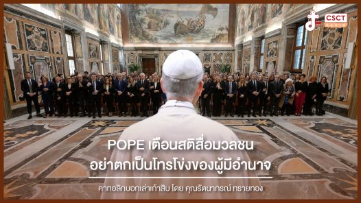 รายการ “คาทอลิกบอกเล่าเก้าสิบ”วันอาทิตย์ที่ 22 มีนาคม 2026ตอน Pope เตือนสติสื่อมวลชน อย่าตกเป็นโทรโข่งของผู้มีอำนาจดำเนินรายการโดย คุณรัตนาภรณ์ ทรายทองผลิตโดย สื่อมวลชนคาทอลิกประเทศไทย